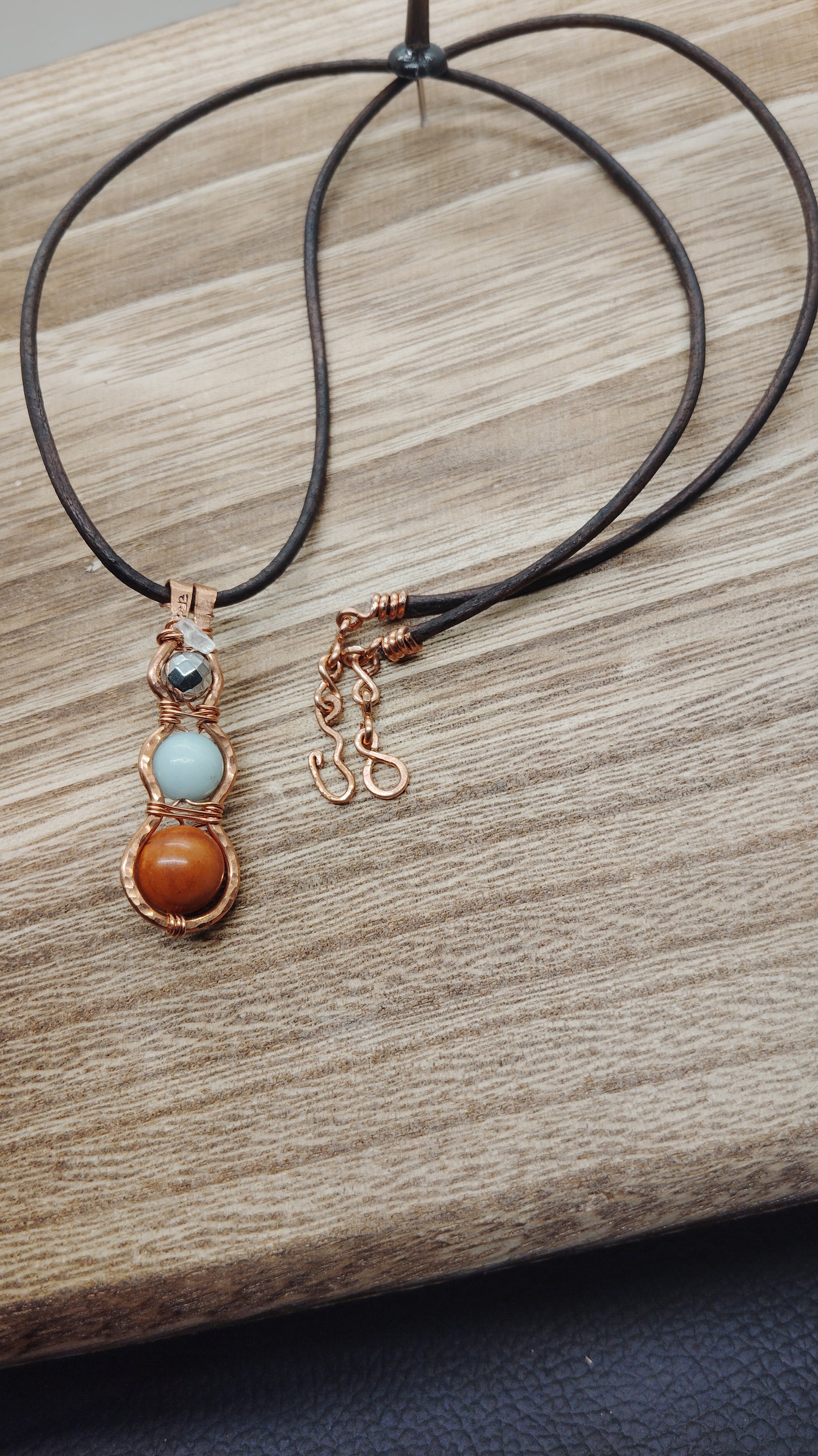 ✨ Materials: Hematite, Amazonite, Red Jasper, Clear Quartz, copper, leather cord