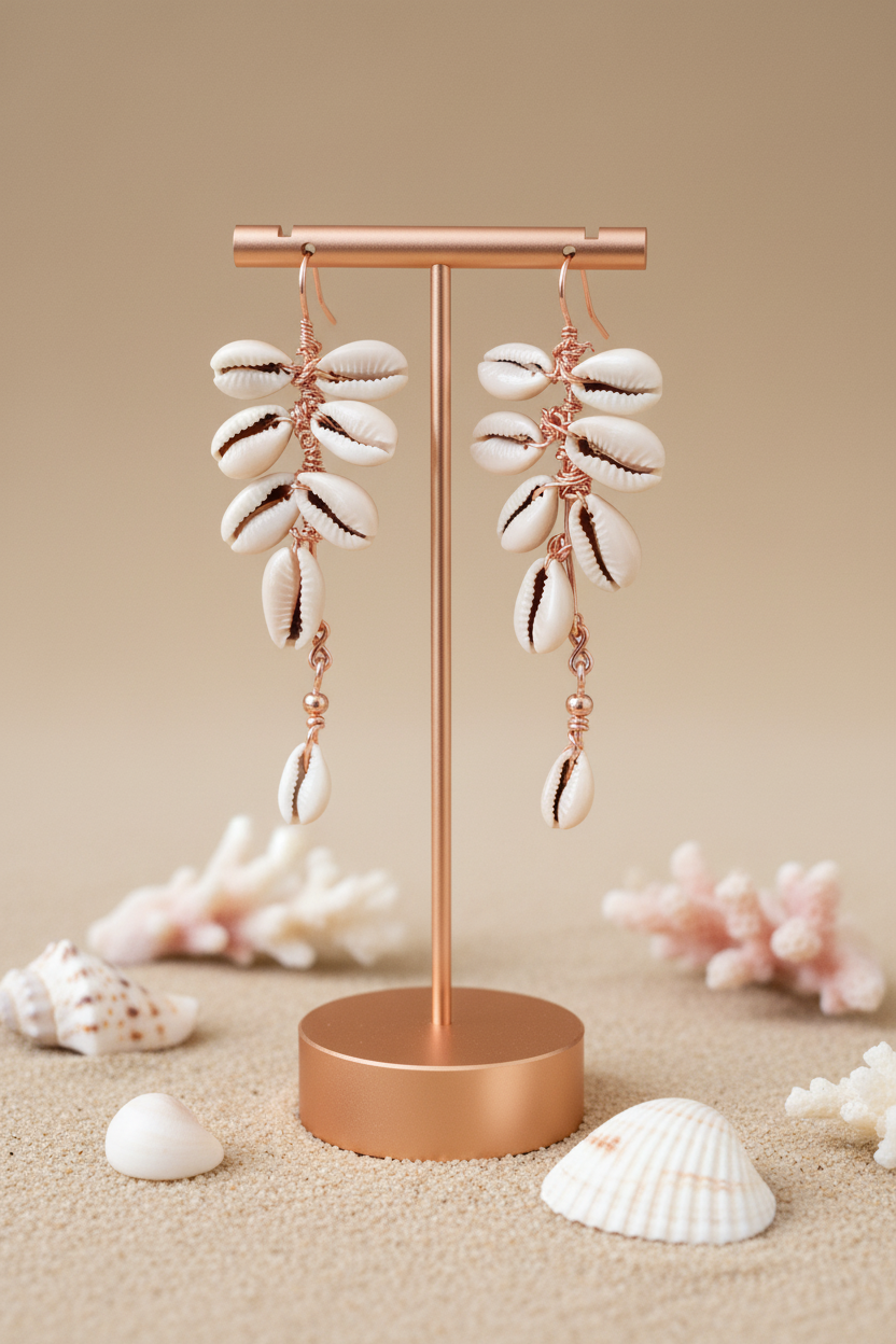 Inspired by the rhythm of the sea and the effortless grace of a woman moving in a long, flowing dress, the Sea Lady Cowrie Drop Earrings evoke coastal beauty, feminine strength, and ancestral memory. Hand-wrapped in warm copper, cascading cowrie shells move gently with the body, creating a soft, natural sound and an organic sense of flow.